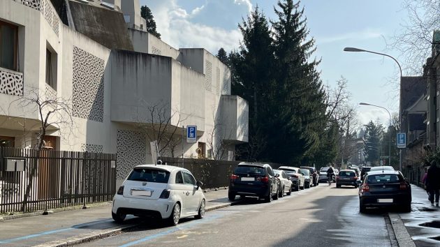 Die Verteilung des Strassenraums gibt zu denken: 11 Meter für Autos, 5 Meter für Füsse, 2,5 Meter für Bäume und 1,25 Meter fürs Velo.