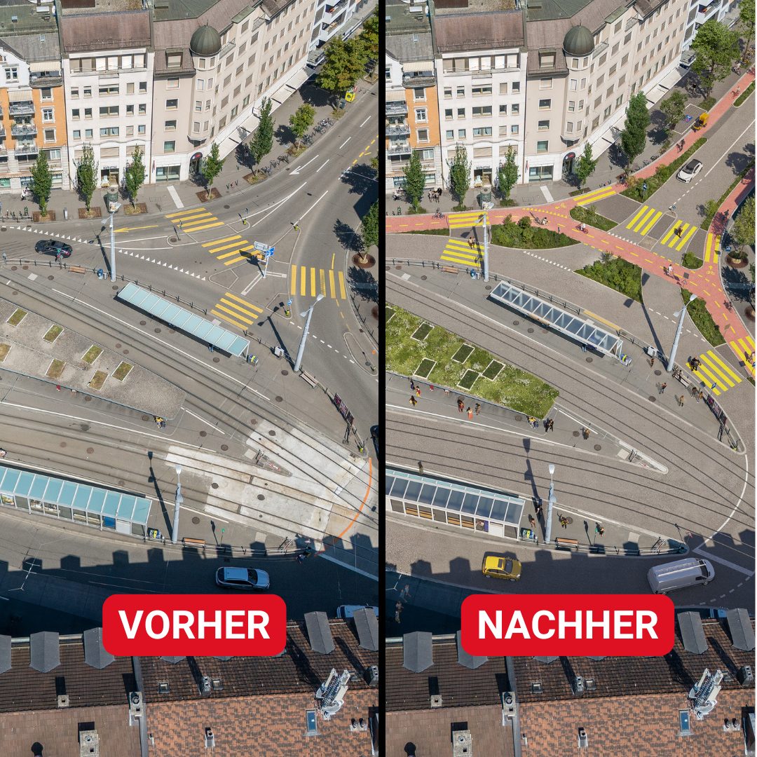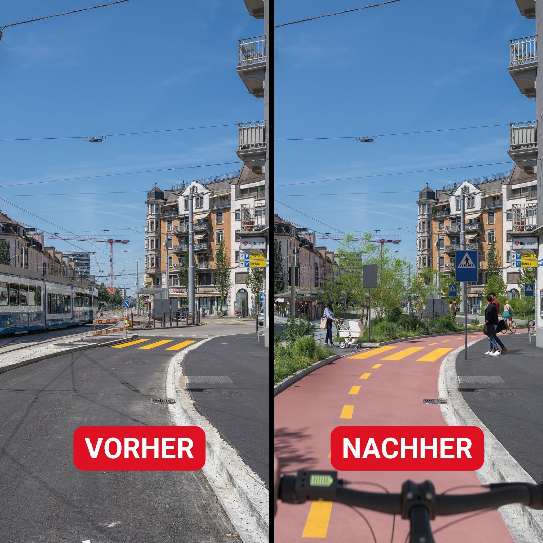 Albisriederplatz mit und ohne E-Bike-City: Aus der Veloperspektive.
