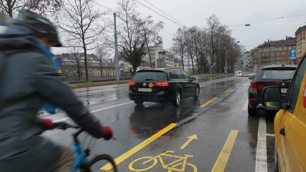 Werden Zufussgehende und Velofahrende über dieselbe Fläche geführt, spricht man von einer Mischzone. Mischverkehr führt eigentlich immer zu Konflikten. Denn Velofahrende und Zufussgehende sind in unterschiedlichen Tempi unterwegs. Darum sind Mischzonen eigentlich immer Mistzonen. Geführt wird dieser Mist von Verkehrsplanenden, welche zu wenig Eier(stöcke) haben, um dem Auto mehr Platz fürs Velo abzutrotzen.