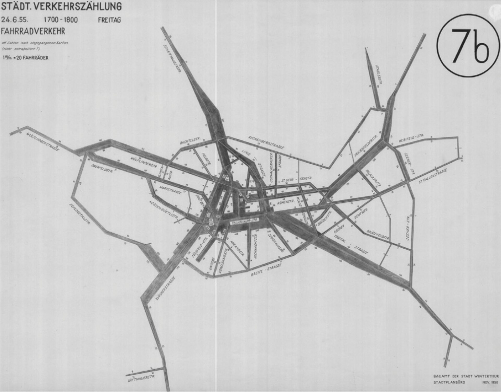 Die städtische Zählaktion von 1955. Quelle: Bauamt der Stadt Winterthur, 1955/56. Abgedruckt in: ViaStoria, ASTRA, 2014.