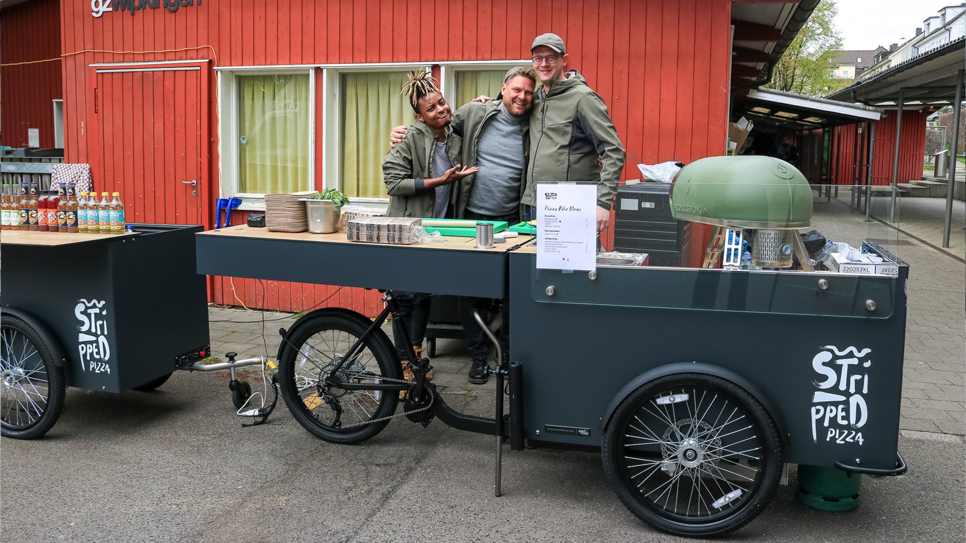 Das Bike von Stripped Pizza backt Pizzas heiss und knusprig direkt vor Ort. Der Pizzaofen ist gasbetrieben und kann somit ohne weitere Anschlüsse bedient werden. Allerdings freut sich das Team trotzdem über einen 230-Volt-Stromanschluss, um allfällige Kreditkartenleser oder andere elektronische Geräte anzuschliessen.