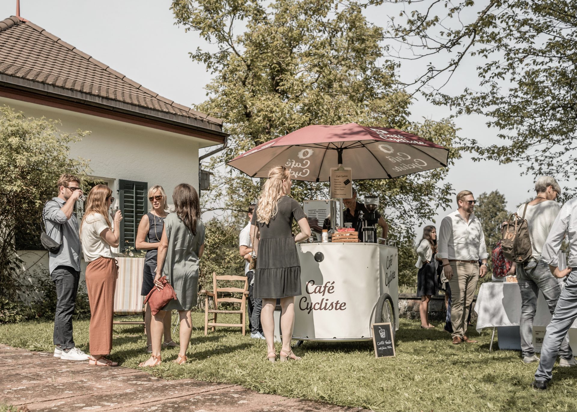 Mitkonditionen: Das Kaffeevelo inklusive Barista kann zu einem Festpreis von 1200 Franken gebucht werden. Bei längeren oder steileren Anfahrten kommt das Velopresso per Auto. Hier werden die Transportkosten zusätzlich verrechnet.