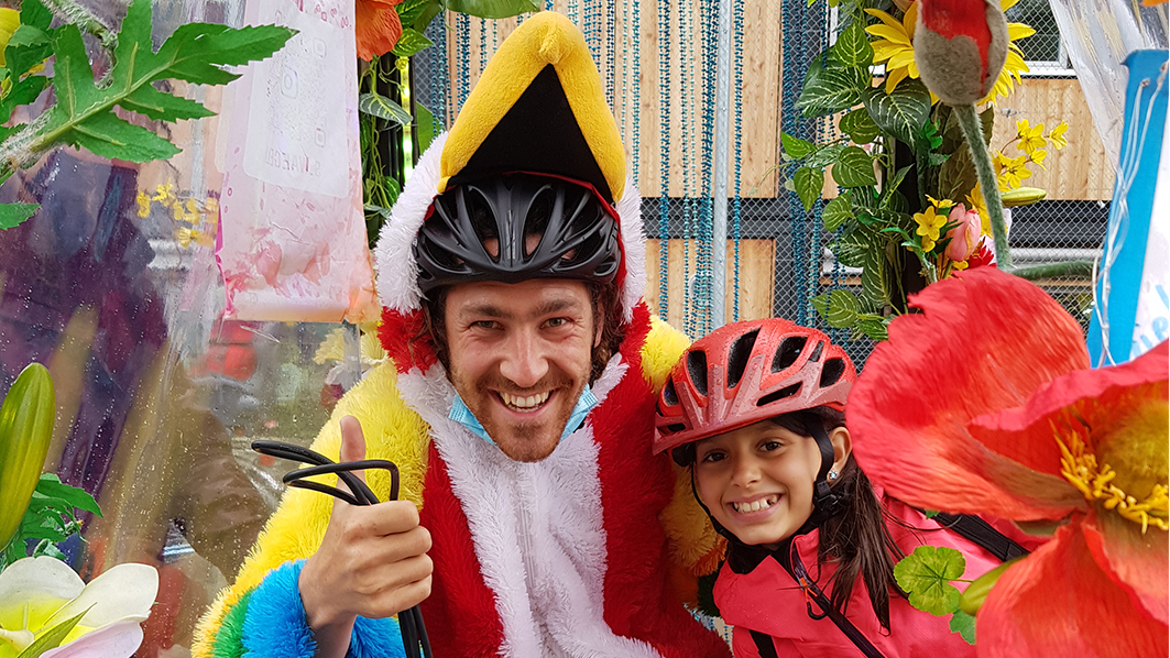 Inzwischen sind wir am Bahnhof Oerlikon angekommen, und Maya denkt trotz einsetzender Erschöpfung nicht daran, von ihrem Trotti abzusteigen. Die kreativ dekorierten Cargobikes, die Zurufe von anderen Teilnehmenden und die Kinderlieder vom Soundmobil lassen die Müdigkeit verschwinden.