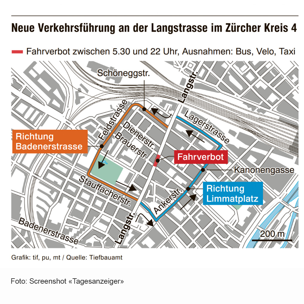 Kleine Umbauten der Langstrasse und ein neues Verkehrsregime werden vom Tiefbauamt und der Dienstabteilung Verkehr ausgeschrieben. Man weiss nicht recht, wieso, schliesslich wurde das Verkehrsregime bereits einmal veröffentlicht. Zu hoffen bleibt, dass nicht zu viele Einsprachen eingehen werden und diese das Projekt nicht noch weiter verzögern.
