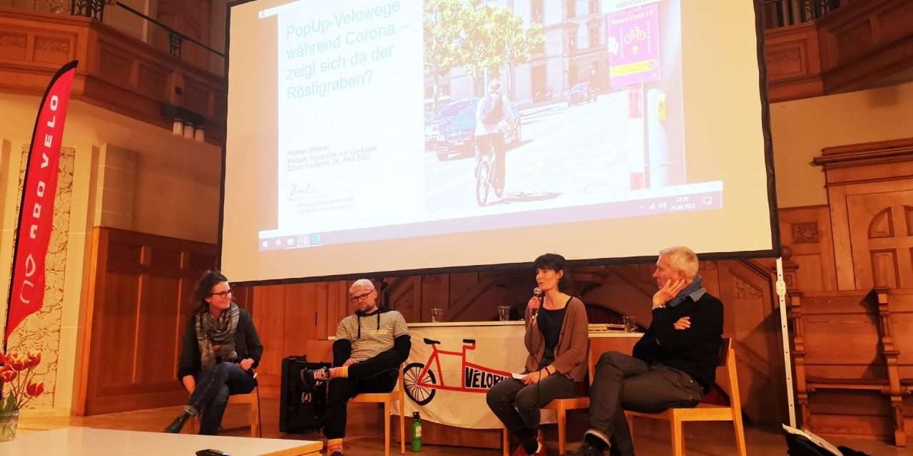 Was braucht es, damit es mit der Veloinfrastruktur endlich vorwärtsgeht? Wir diskutierten diese Frage auf einem Podium mit einem Veloaktivisten aus Berlin und einer Doktorandin aus Lausanne.