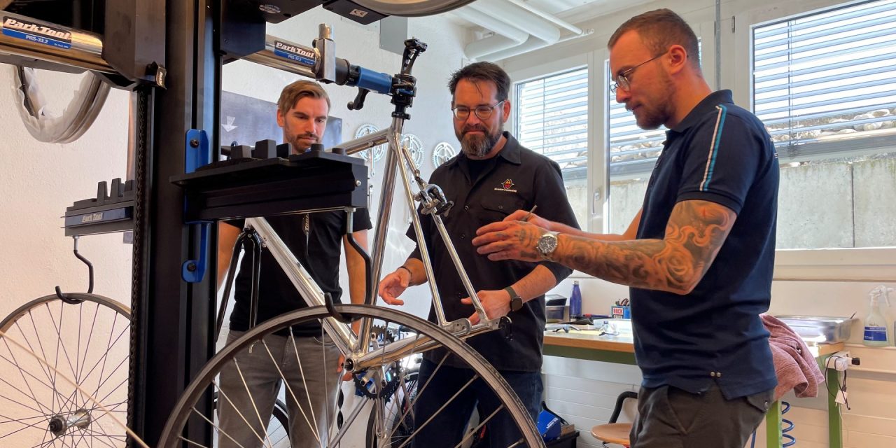 Betritt man die Velowerkstatt Wisli in Bülach, scheint auf den ersten Blick alles wie in jedem anderen Velogeschäft zu sein. Es gibt eine Verkaufsfläche mit diversen Velos und einer Auswahl an Ersatzteilen und Accessoires. Einzig wenn man in die offene Werkstatt schaut, sind dort vielleicht etwas mehr Leute am Arbeiten als allgemein üblich – und um einen Montageständer sind sogar gleich vier Personen versammelt und in eine Diskussion vertieft.