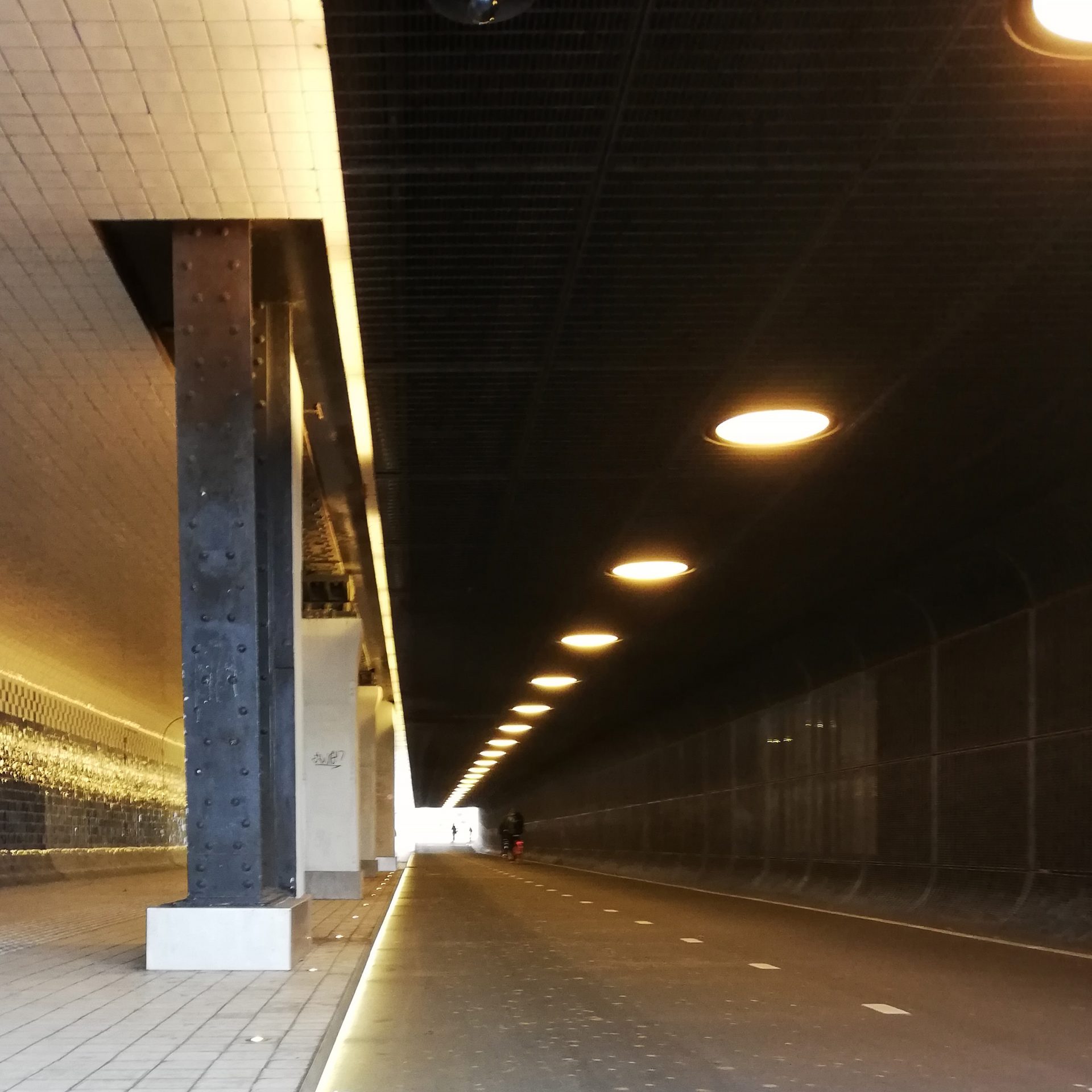 In diesem Tunnel gibt es eine klare Abtrennung zwischen dem Bereich für Zufussgehende und der Spur für Velofahrende – hier im Bewegtbild.