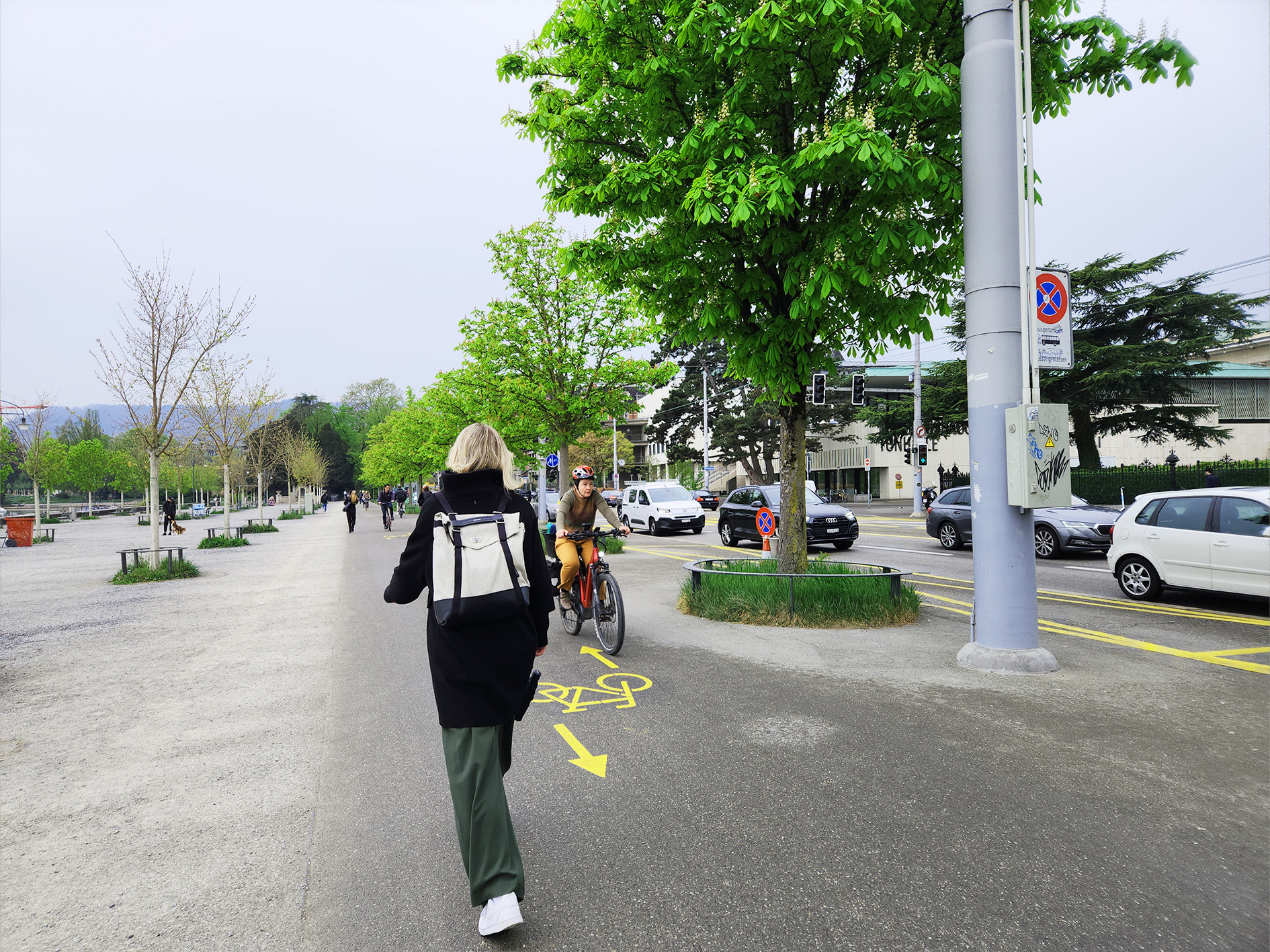 Unklare Situation am General-Guisan-Quai: Auf dem Asphalt hat es Velosignette, trotzdem sind da oft viele Zufussgehende unterwegs.