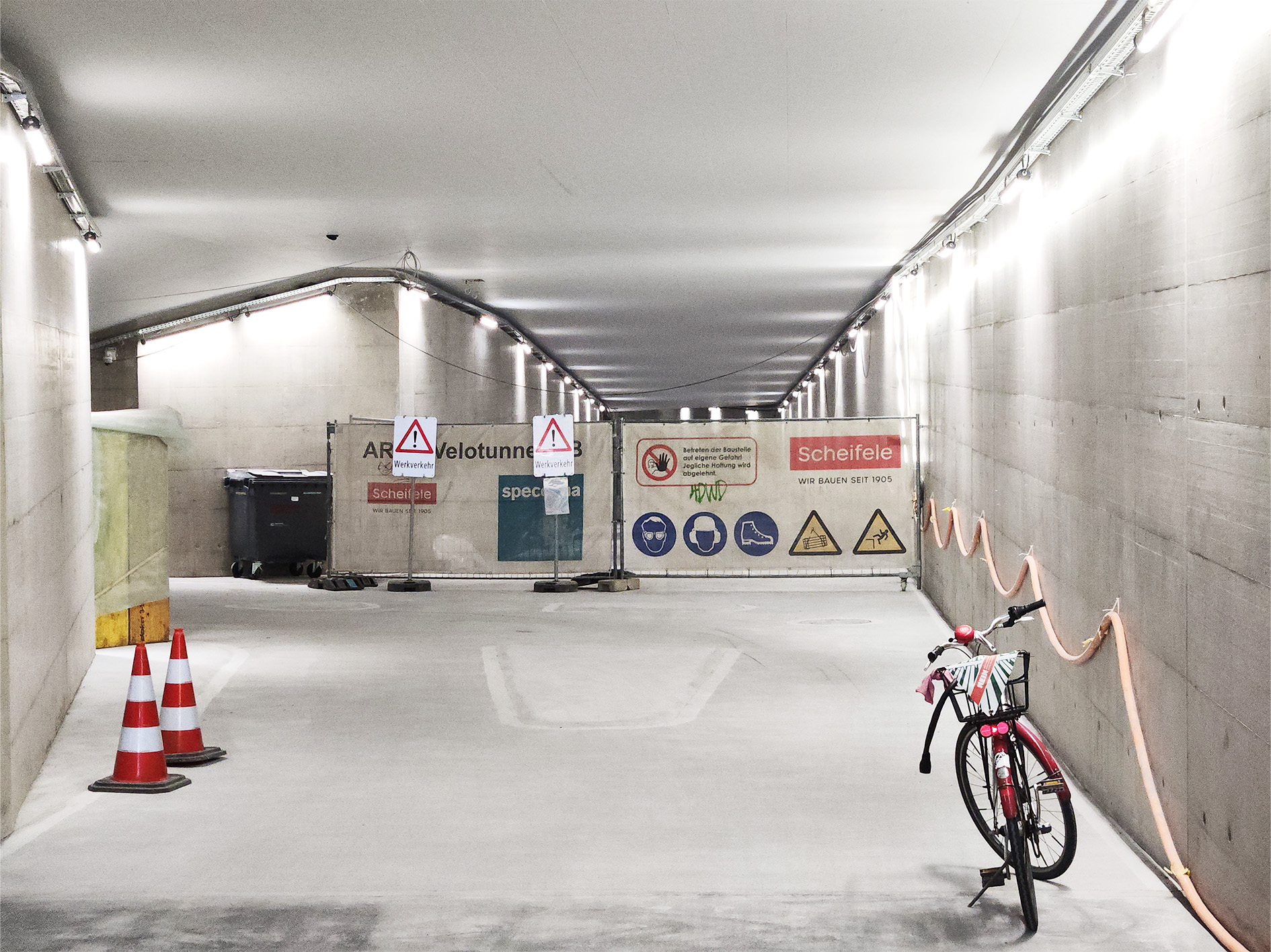 Bald wird man hier nicht nur links in die bisherige Velostation abbiegen, sondern geradeaus durch den Velotunnel fahren können.