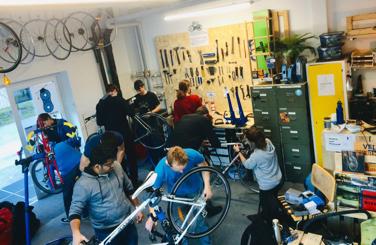 Der Studierendenverein Velove betreibt insgesamt vier Velowerkstätten und bietet auch Flickkurse an.