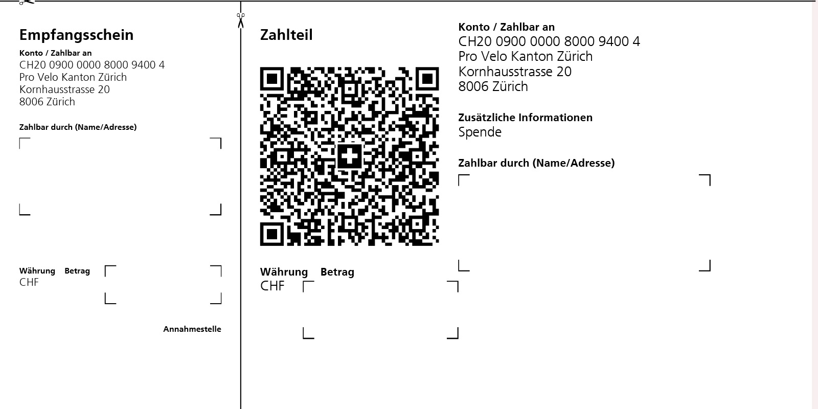 Der Einzahlungsschein für die Spende an Pro Velo Kanton Zürich hier zum Downloaden.