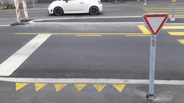 Ganz neu gebaut und schon unbrauchbar: Die Kreuzung Lang-/Lagerstrasse im Zürcher Kreis 4....
